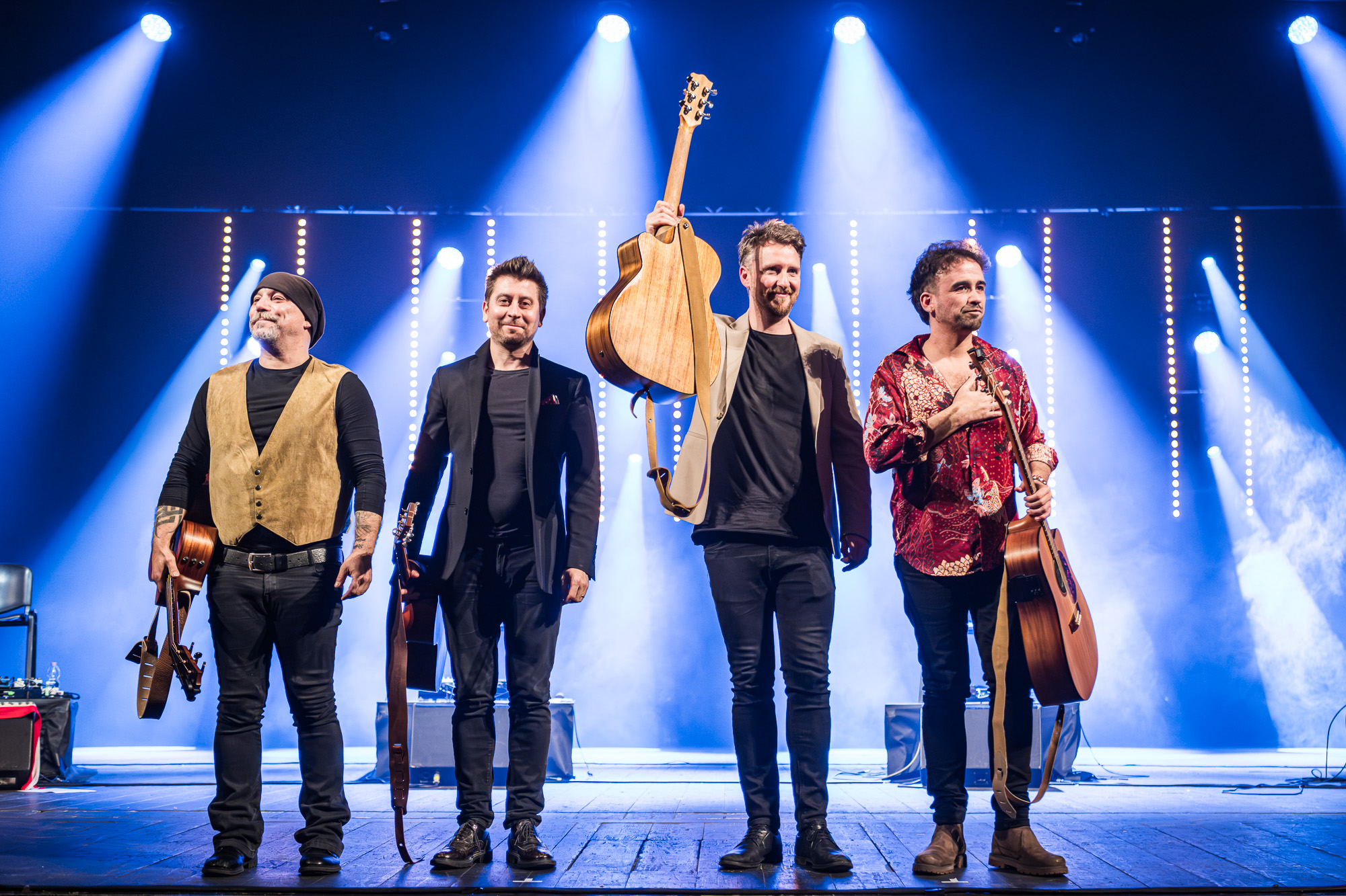 40 FINGERS – das sind Matteo Brenci, Emanuele Grafitti, Enrico Maria Milanesi und Andrea Vittori. Mit technischer Brillanz, genialen Arrangements und dem charakteristischen Fingerpicking erschaffen sie eine Klangwelt von überraschend emotionaler Tiefe, die Millionen von Menschen berührt und in ihren Bann zieht. Ihre Konzerte sind atmosphärisch und gleichzeitig tief verbindend. Ganz unmittelbar vergisst der Zuschauer, was um ihn herum passiert und wird hineingesogen in den musikalischen Kosmos aus virtuose Präzision, perfekten Harmonien und mitreißender Spielfreude. Das dargebotene Repertoire rangiert zwischen bekannten Rock- und Pop-Klassikern und wird durch lateinamerikanische Einflüsse und Anleihen aus dem Jazz ergänzt. Mit subtiler Eleganz und einem untrüglichen Feingefühl spielen 40 FINGERS mit den Genres und schaffen etwas gänzlich Neues. Besonders hervorzuheben ist ihr Arrangement von Queens „Bohemian Rhapsody“, das mehr als zwölf Millionen YouTube- Aufrufe verzeichnet. Die offizielle Anerkennung durch Queen selbst unterstreicht die internationale Reputation von 40 FINGERS. Letzteres zeigt sich auch in ihren zahlreichen Kollaborationen mit den verschiedensten nationalen und internationalen Künstlern, darunter Andrea und Matteo Bocelli, die amerikanische Sängerin Tori Kelly und Andy Summers von The Police.