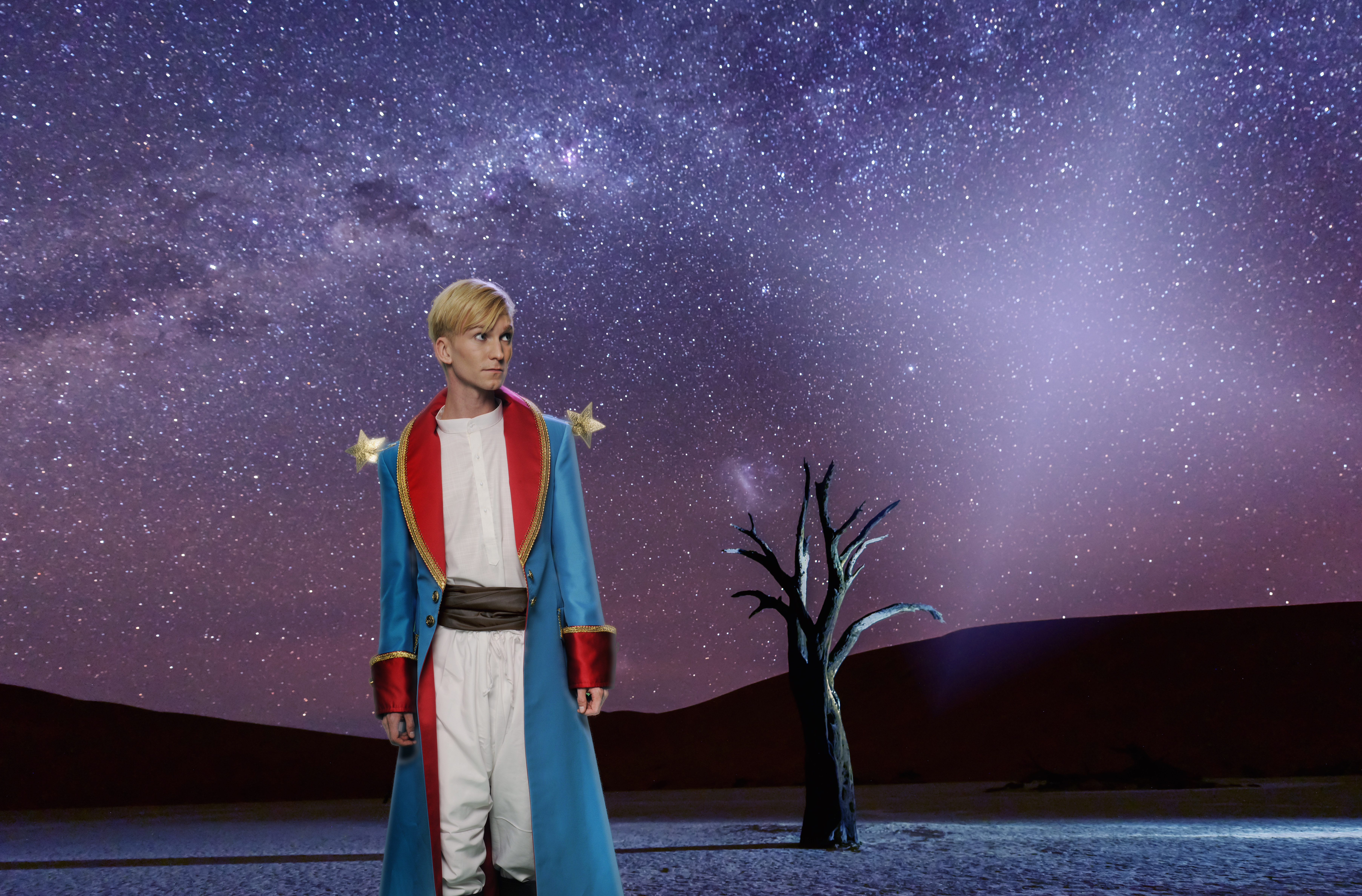 DER KLEINE PRINZ von Antoine de Saint-Exupéry wurde in 110 Sprachen übersetzt und ist eines der meistgelesenen Bücher der Welt. Millionen Kinder und Erwachsene haben die Geschichte um einen jungen Botschafter von einem fremden Stern regelrecht verschlungen. Immer wieder gab es Versuche, diesen magischen Stoff für die Bühne zu bearbeiten. Meist als pädagogisches Kindertheater, wohl mit dem Gedanken, dass Kinder die Erzählung noch am leichtesten verstehen. Dabei zielt das Stück gerade darauf ab, in die manchmal versteinerten Herzen von Erwachsenen einzudringen, die weniger offen sind aber gerade darum die Begegnung mit dem Kleinen Prinzen vielleicht umso nötiger haben.