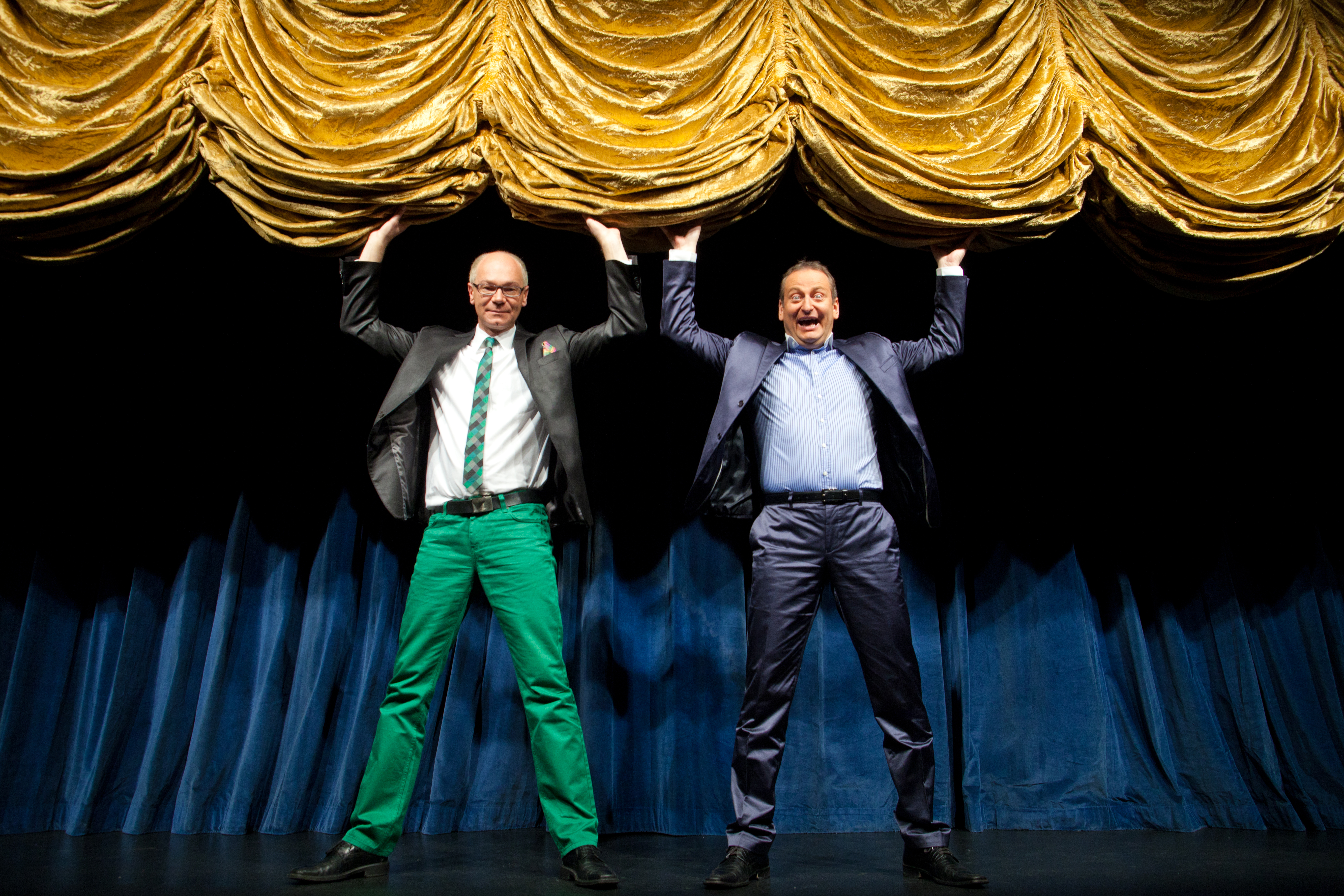 Erleben Sie die beliebten Komödianten in einer hinreißend witzigen Liebeserklärung ans Theater und seine vielseitigen, überdrehten und oft genug auch nur völlig durchgeknallten Protagonisten. Die zwei begnadeten Verwandlungskünstler stürzen sich dabei in unglaubliche Anekdoten, spannende Erlebnisse sowie absurde Abenteuer vor, hinter, über und manchmal auch unter der Bühne. Dabei schlüpfen sie wieder in jede Menge verrückter Rollen vom großspurigen Kulturreferenten über den aufgeblasenen Kritiker oder die liebestolle Garderobiere bis zum zerstreuten Kartenabreißer und viele andere irrwitzige Charaktere mehr. Brandneue Sketche und Klassiker aus den Anfangsjahren sind ebenso mit dabei wie die Kult-Witwen "Waltraud & Mariechen", die natürlich nicht fehlen dürfen, wenn es einen vergnüglichen Abend lang rund ums große Theater und kleine Dramen (oder umgekehrt) geht.